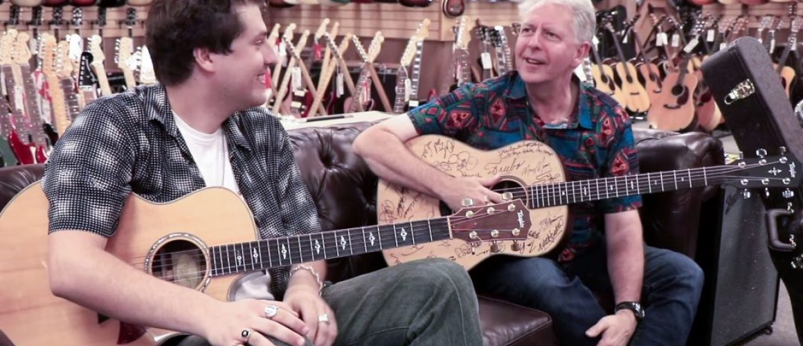 I had a little time to open it up, revealing the guitar in all it’s glory. Signed by many, including the Contest judges Tim Pierce and Michael Lemmo, I was keen to take it out and examine it further. But the waiting area at AGN wasn’t the place, besides, they were keen to shoot the presentation and a little ‘jam session’ with Michael before the store opened at 11. So, we all ventured next door. Tim Pierce, I was sad to hear, wasn’t able to make it, so it was just going to be Michael and me.